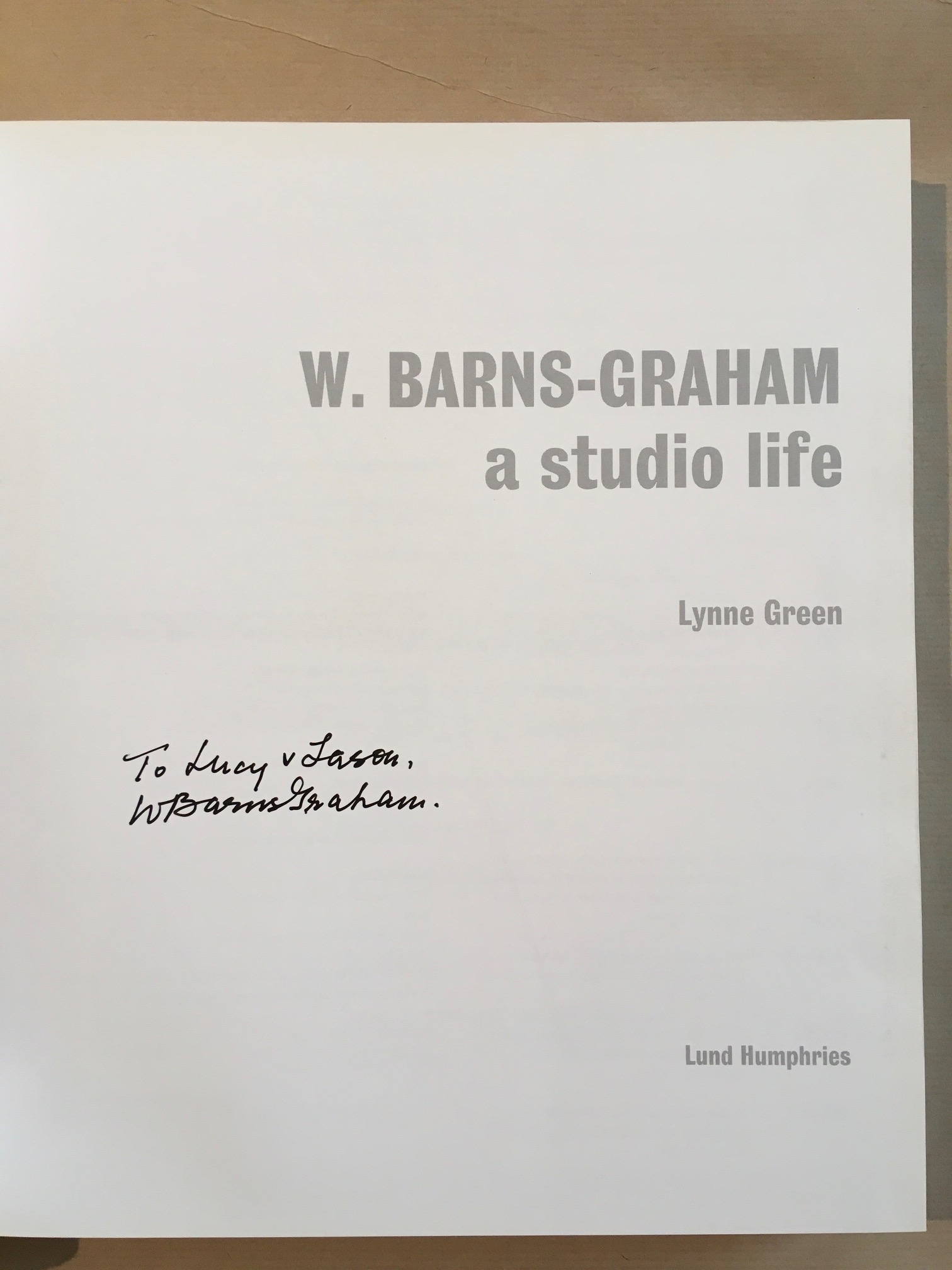 26 x 30cm 312pp near fine hardback, dark red cloth boards, red and white dust jacket, front features a detail from ‘Volcanic Wind 1944’, rear: ‘Studio Interior 1945.’ Signed on the title page: ‘To Lucy & Jason, W. Barns-Graham.’ Includes a foreword and prologue. Chapters arranged into sections: ‘Childhood and the First Stirrings of Art’, ‘Art College and a Wider World’ plus four others. Many black and white and colour reproductions throughout.